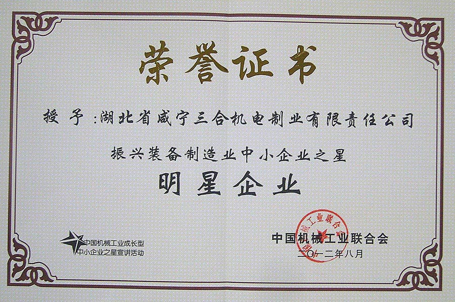 中國機械工業(yè)聯(lián)合會(huì )明星企業(yè)